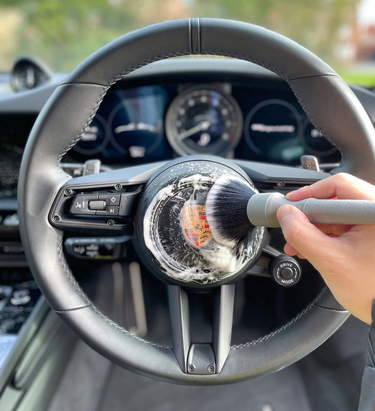 • Interior trims, dashboard, steering wheel and centre console wiped down